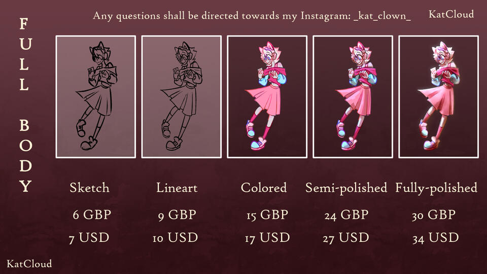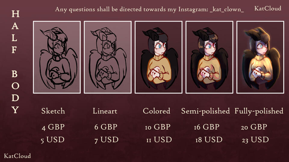 (conversation can be moved onto discord if you deem it's more comfortable to use, I will provide you with my discord tag)I WILL be giving you a lot of updates and screenshots of my process, but I will also be putting my name on the screenshotsI will not be making exceptions with pricesI have the right to reject any order or commission